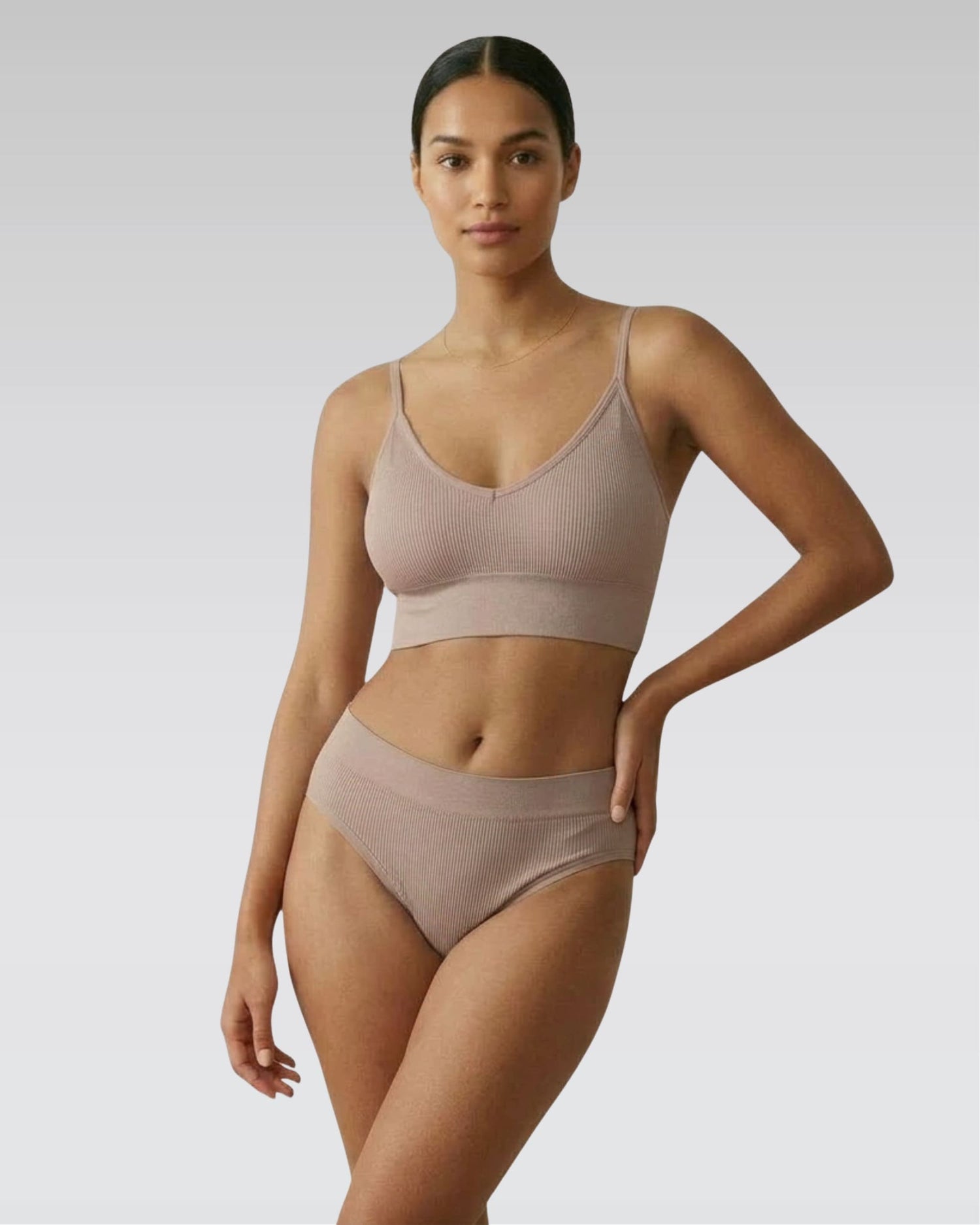- Ensemble sans couture 2 pièces : soutien-gorge rembourré + culotte.