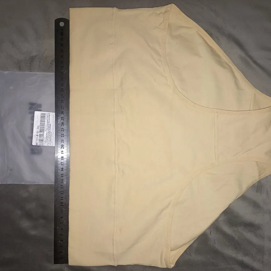High rise briefs provide gentle tummy shaping and support with their belly control feature. The high rise design offers extra coverage and a flattering fit. Seamless construction ensures a smooth, invisible look under clothing. Made from soft cotton fabric, they are breathable and comfortable for all-day wear. Available in a range of sizes to suit all body types, and in nude color, perfect for wearing under light-colored clothing.
