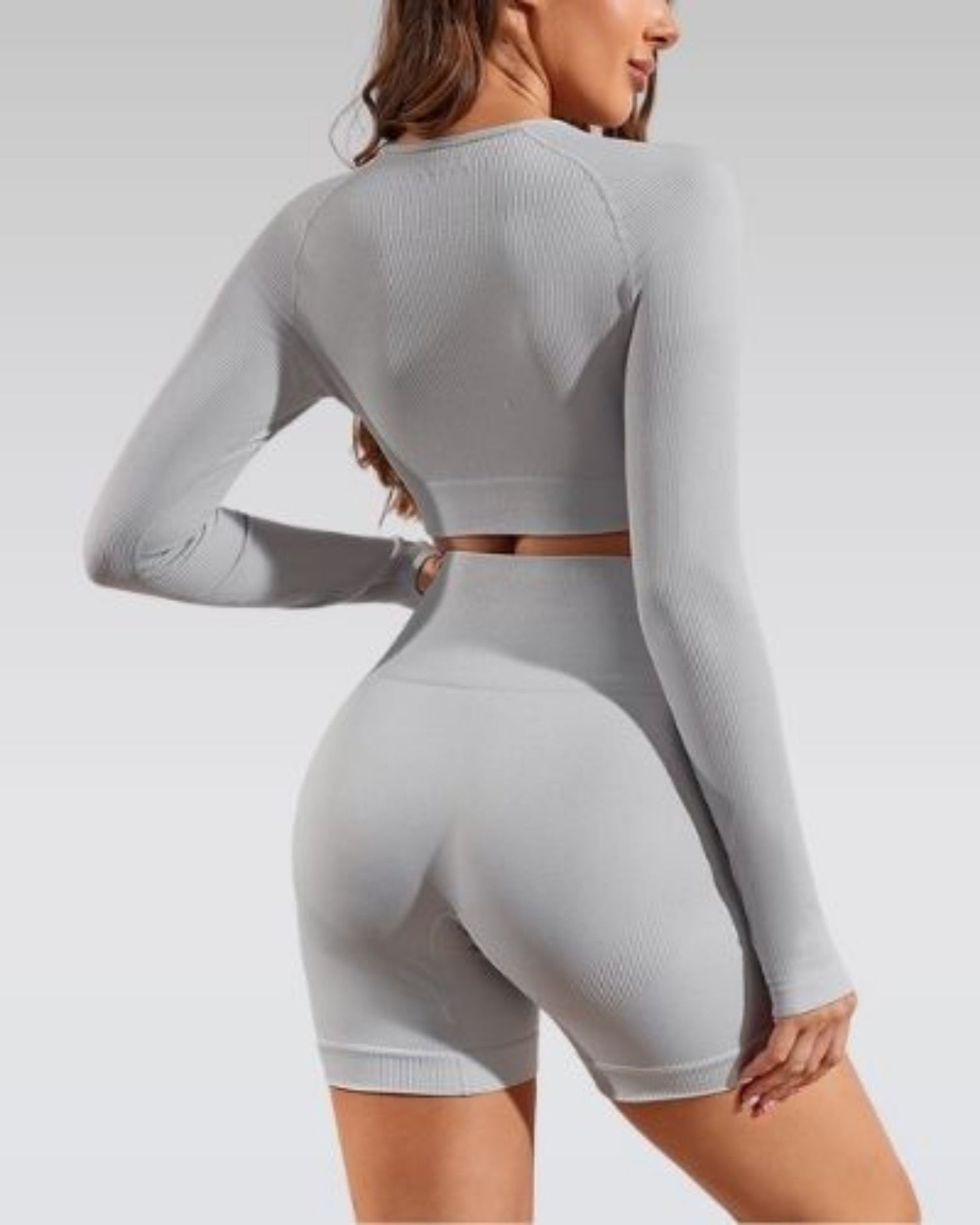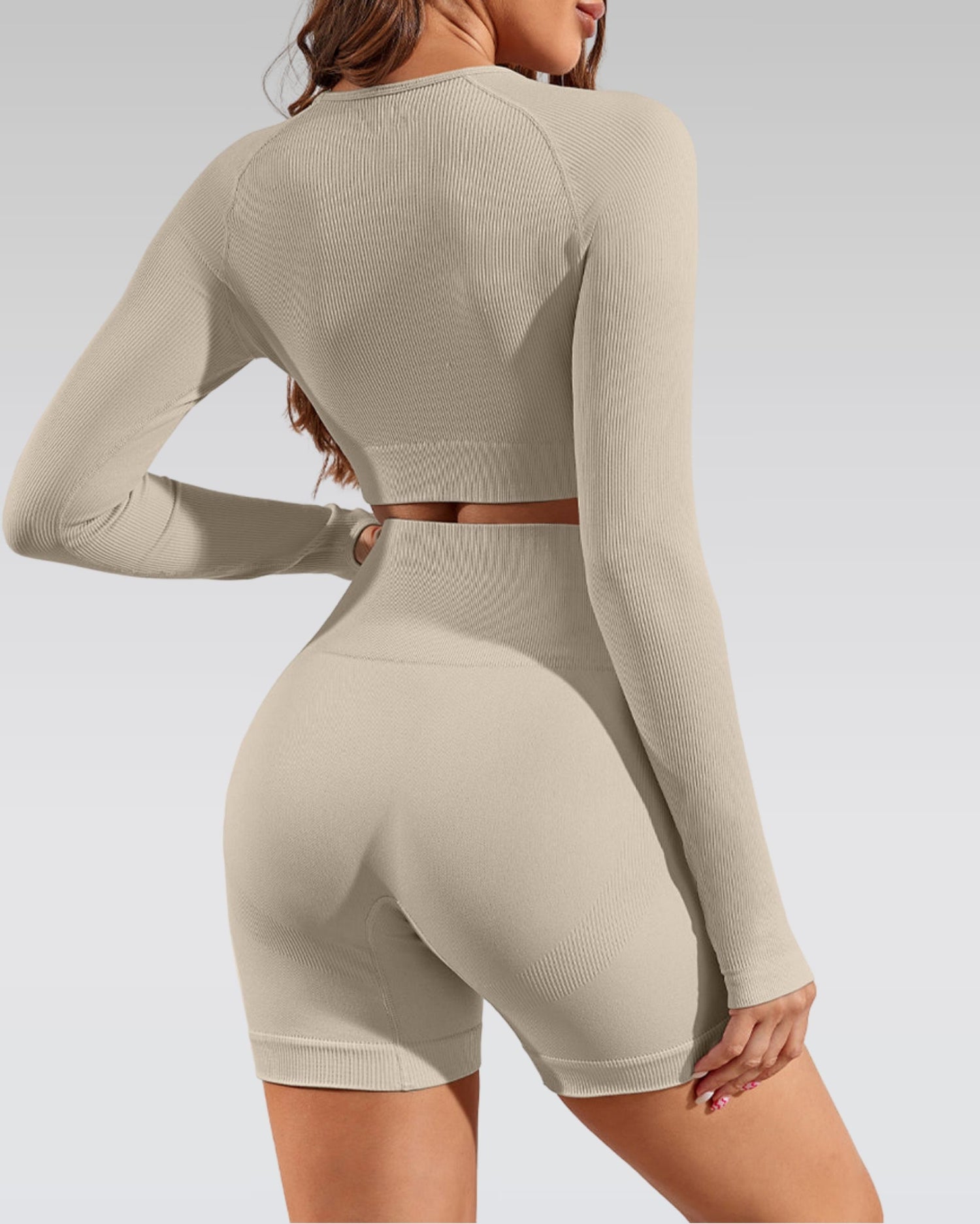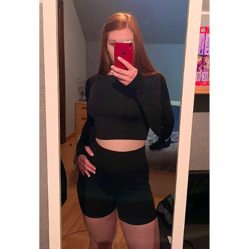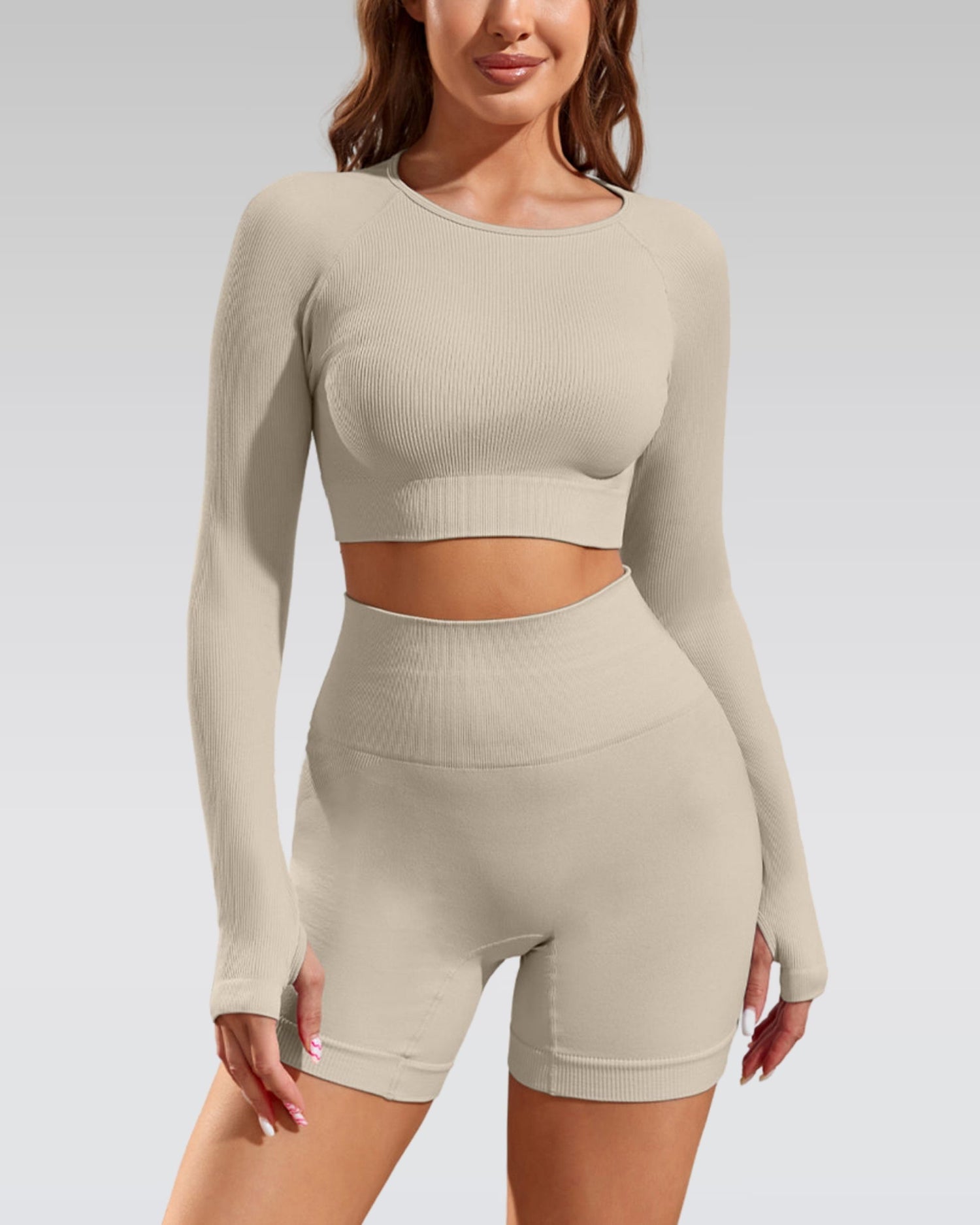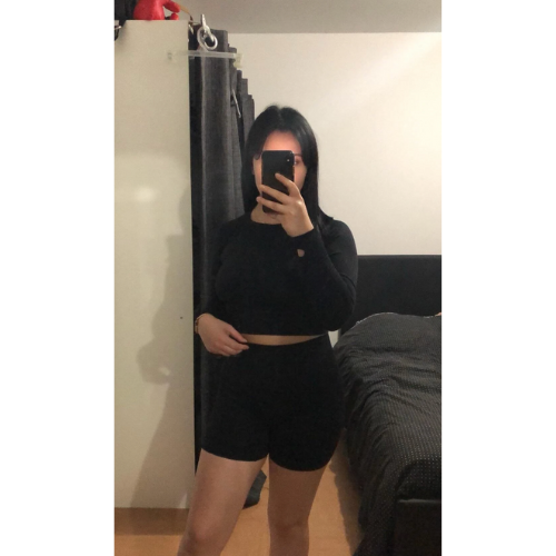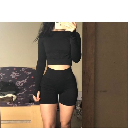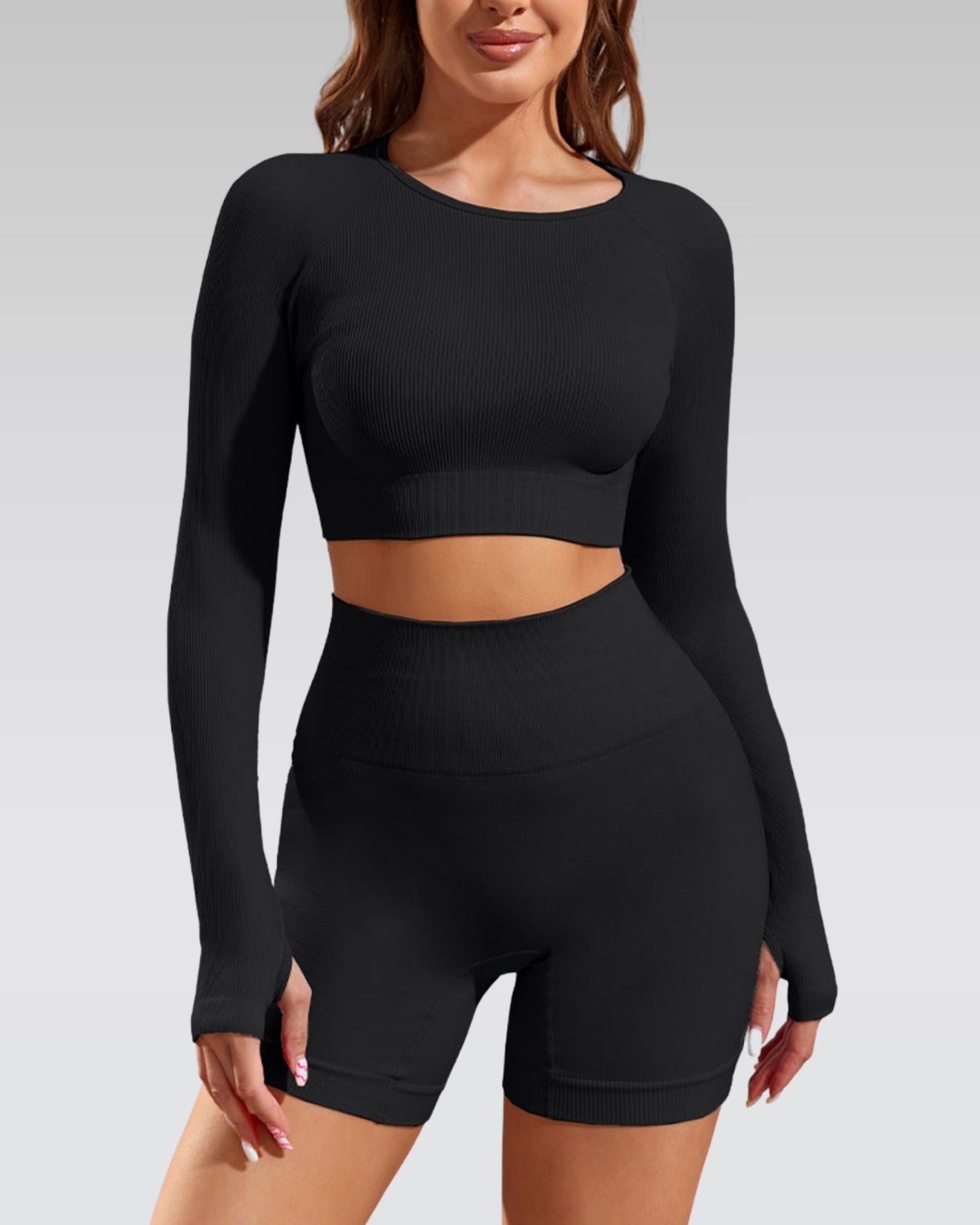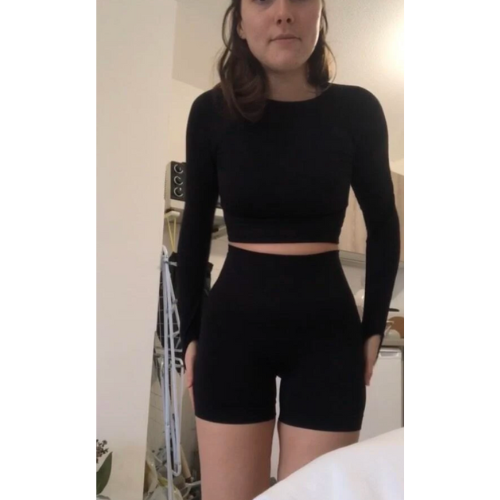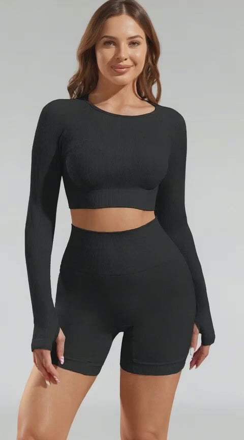 - Everyday set: long sleeve crop with thumb holes, made for workouts and off-duty.