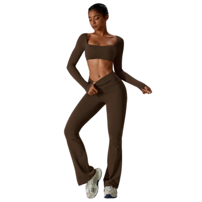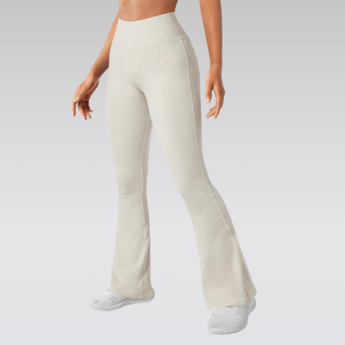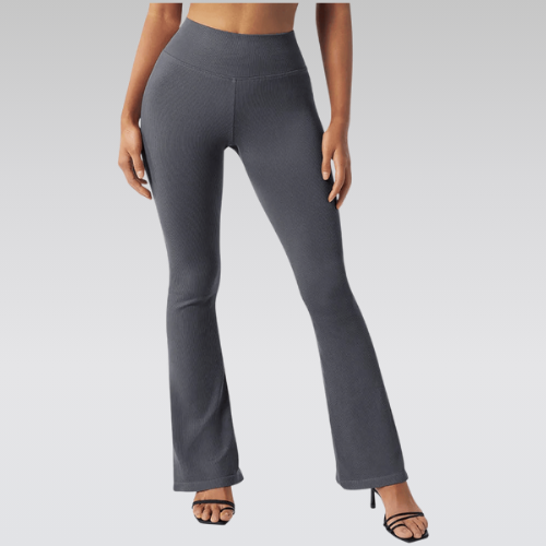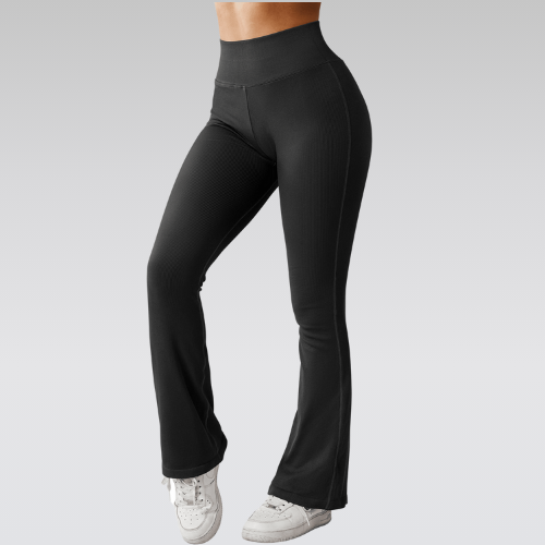 Our flared leggings, combining fashion and comfort for a trendy look. Perfect for fitness activities, these leggings provide the right balance of flexibility and support. Designed to lift and enhance the buttocks, they feature a high-waist push-up effect to shape and support the midsection. The seamless construction ensures maximum comfort and freedom of movement without chafing. The ribbed fabric adds a stylish element while providing excellent durability and support.
