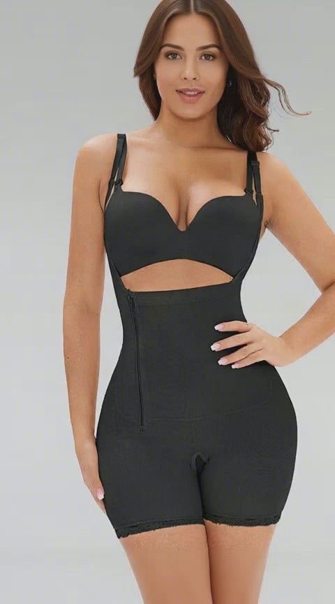 - Underbust + open front: smooths from mid-waist to thighs while leaving your bra line free for your preferred lift.