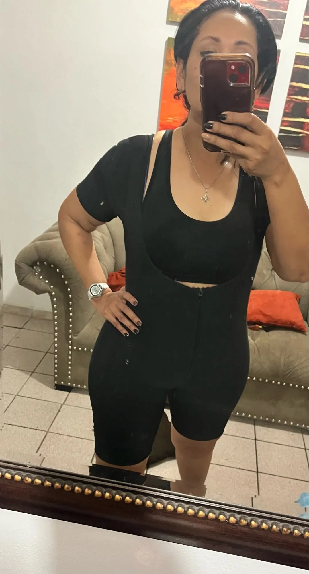 Our thermal sauna garment, designed with advanced fabric technology that retains body heat to increase sweating, promoting weight loss and detoxification. This full-body compression garment provides firm support and shaping from your bust to your thighs, smoothing out your silhouette and enhancing your curves. Adjustable straps ensure a perfect fit and targeted support tailored to your body. Made from breathable, flexible material, it allows for a full range of motion while keeping you cool and comfortable. The moisture-wicking inner layer keeps sweat away from your skin, ensuring you stay dry and comfortable during intense workouts. The seamless design is virtually invisible under any outfit, making it perfect for both workouts and everyday wear.